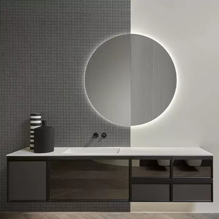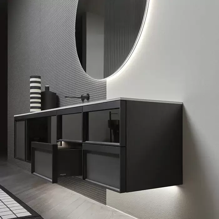 Antonio Lupi Bemade Комплект подвесной мебели с тумбами под раковину, раковиной PODIO90, зеркалом с подсветкой, 90 см, цвет: Rovere Ardesia
