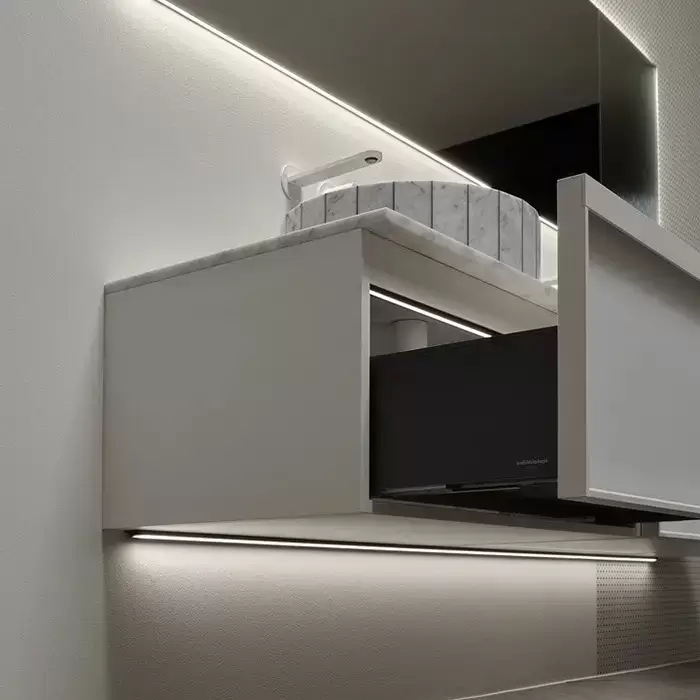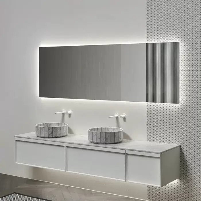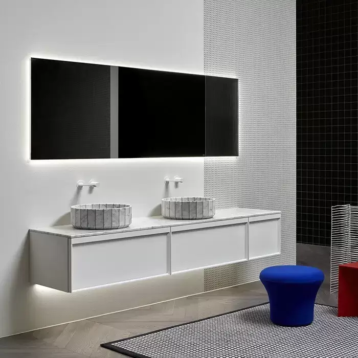 Antonio Lupi Bemade Комплект подвесной мебели с тумбами под раковину, двумя раковинами Carrara, зеркалом с подсветкой, 90 см, цвет: белый матовый