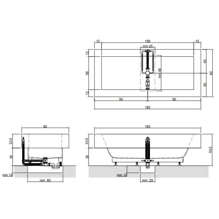 Antonio Lupi Biblio Ванна полувстраиваемая 180х80х53.5см, цвет: белый