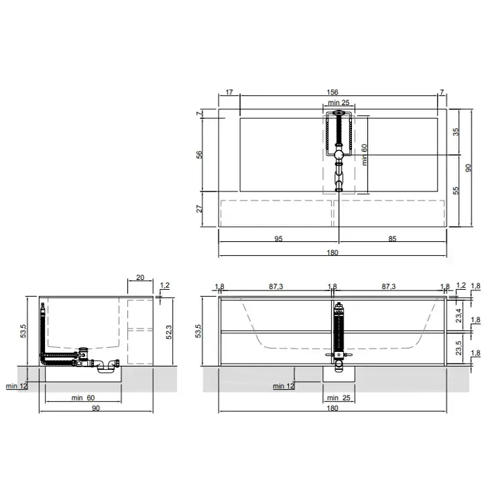 Antonio Lupi Biblio Ванна прямоугольная отдельностоящая, 180х90х53.5см, цвет: белый