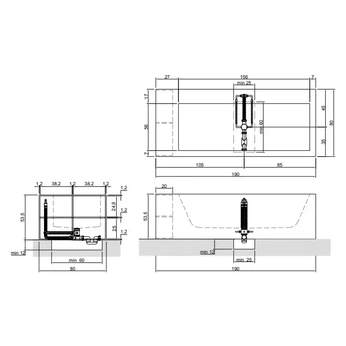Antonio Lupi Biblio Ванна прямоугольная пристенная, (2 стороны) 190х80х53.5см, цвет: белый