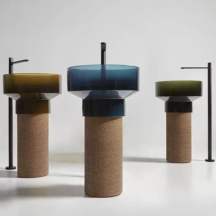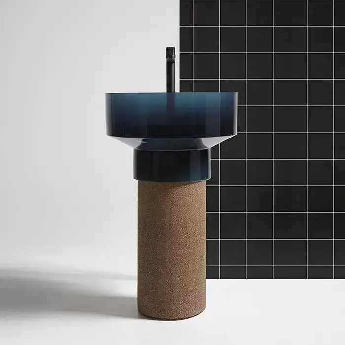 ANTONIO LUPI Borghi Раковина накладная Ø50х33 см, с пьедесталом, Cristalmood, с донным клапаном, цвет Ceruleo