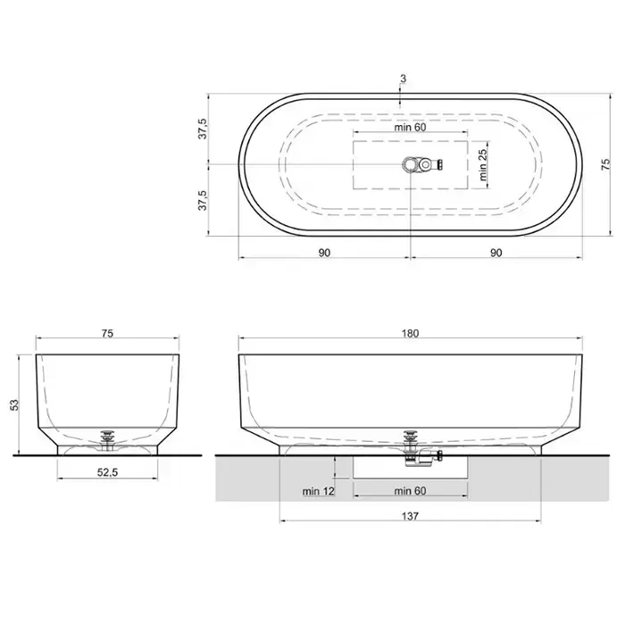 Antonio Lupi Borghi Ванна 1800х750х530 мм., отдельностоящая, с нажимным донным клапаном и сифоном, цвет: Mostato матовый