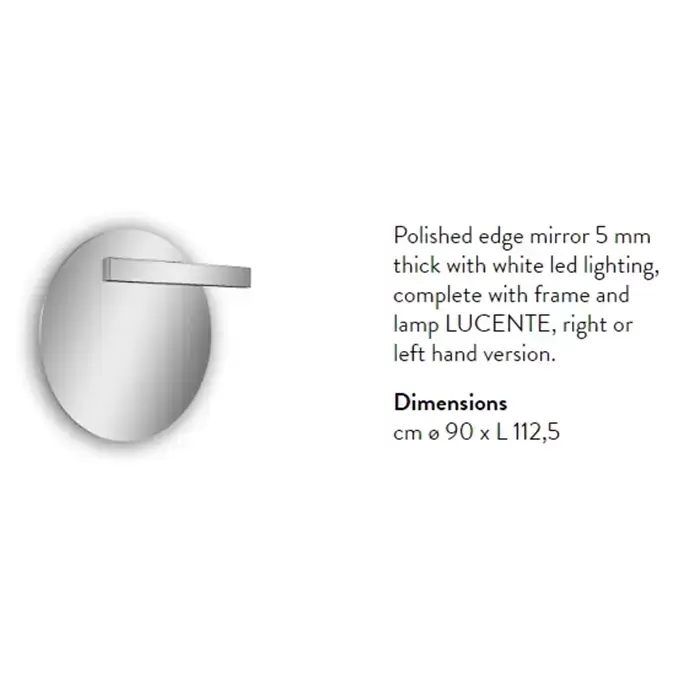 Antonio Lupi Circus Зеркало Ø108cм., с белой светодиодной подсветкой, с блестящей кромкой, с правосторонним светильником LUCENTE, на раме