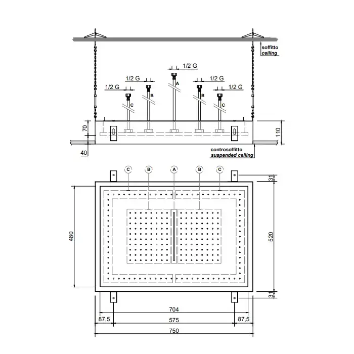 Antonio Lupi Душевая система Meteo Встраиваемая 75 x 52 x 11 см с подсветкой LED RGB
