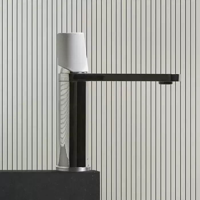 ANTONIO LUPI INDIGO Смеситель для раковины на 1 отверстие, излив 165 мм., ручка белая, цвет: хром глянцевый
