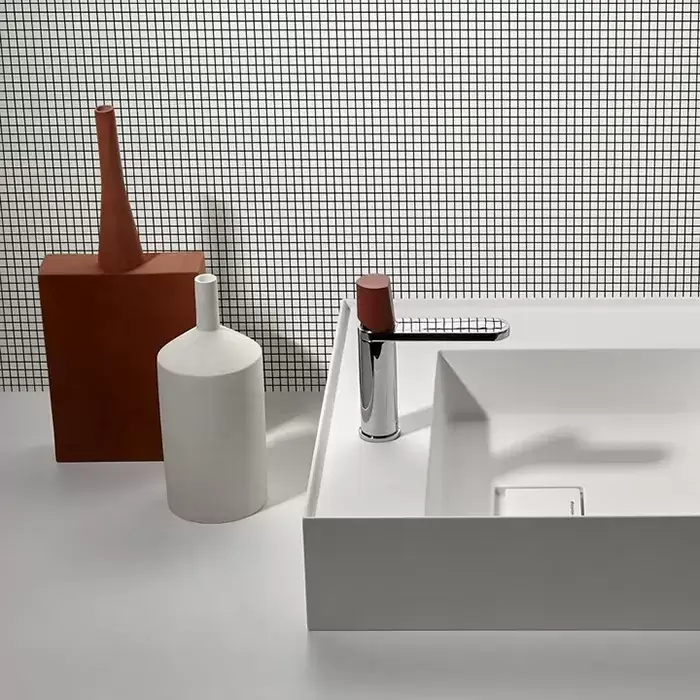 ANTONIO LUPI INDIGO Смеситель для раковины на 1 отверстие, излив 165 мм., ручка Terracotta матовая, цвет: хром глянцевый