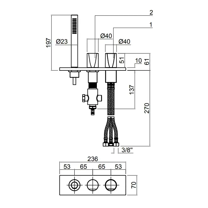 Antonio Lupi Indigo Смеситель на борт ванны, на 3 отв., цвет: графит