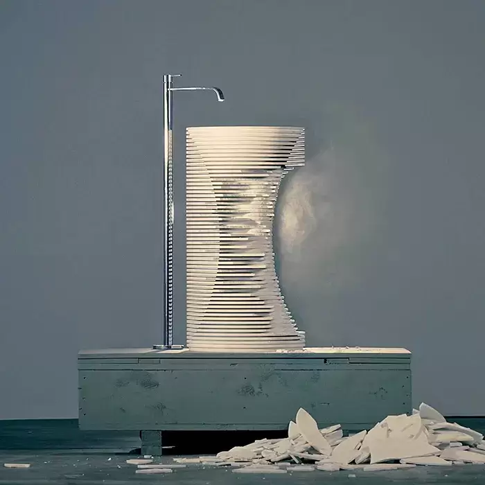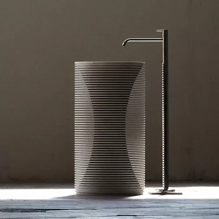 Antonio Lupi Introverso Раковина 45х85см, без отв., без перелива, с д/клапаном, сифоном, слив в пол, мрамор, цвет: Marmo Carrara