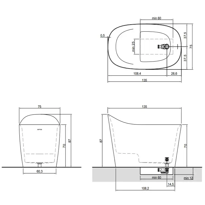 Antonio Lupi Mastello Ванна отдельностоящая 135х75хh87 см, с донным клапаном (хром), сифоном и гибким шлангом, материал: Flumood, цвет: Lambretta