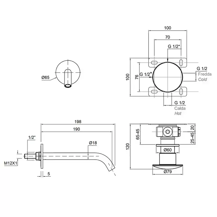 Antonio Lupi MayDay Смеситель для раковины, встраиваемый, с изливом и внутренней частью (комплект), цвет: белый/нержавейка сатинированная