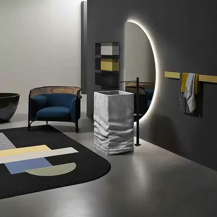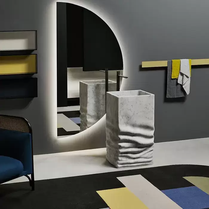 Antonio Lupi Ossimoro Раковина 45х45х85 см, без отв., слив в пол, с сифоном, донным клапаном и гибким шлангом, цвет: мрамор Carrara