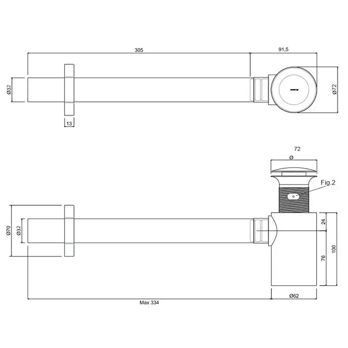 Antonio Lupi Сифон для pаковин и биде, в комплекте с нажимным донным клапаном, цвет: нержавейка сатинированная
