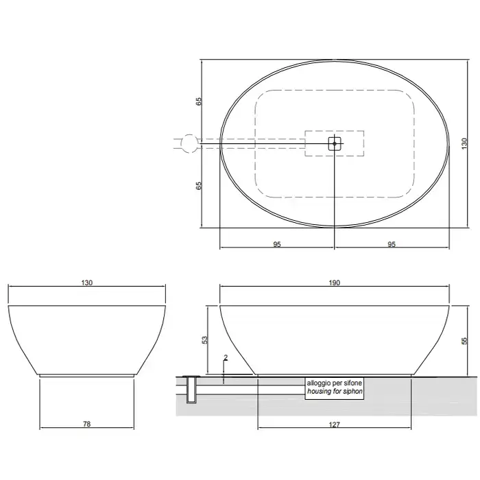 Antonio Lupi Solidea Ванна отдельностоящая 190х130х50 см из натурального камня, цвет: Nero Marquinia