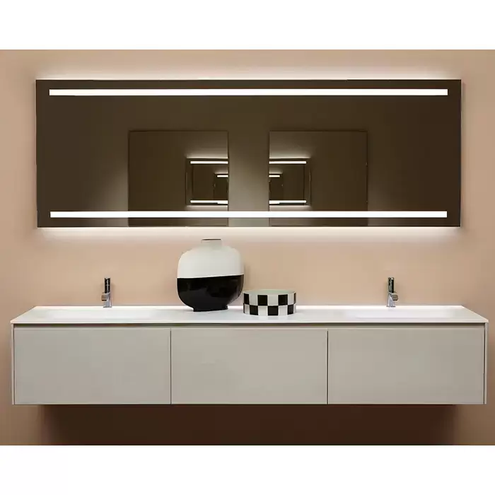 Antonio Lupi Spio Зеркало 216х75х4cм., с блестящей кромкой, с белой светодиодной подсветкой 4000K, без выключателя, на раме из полированной стали