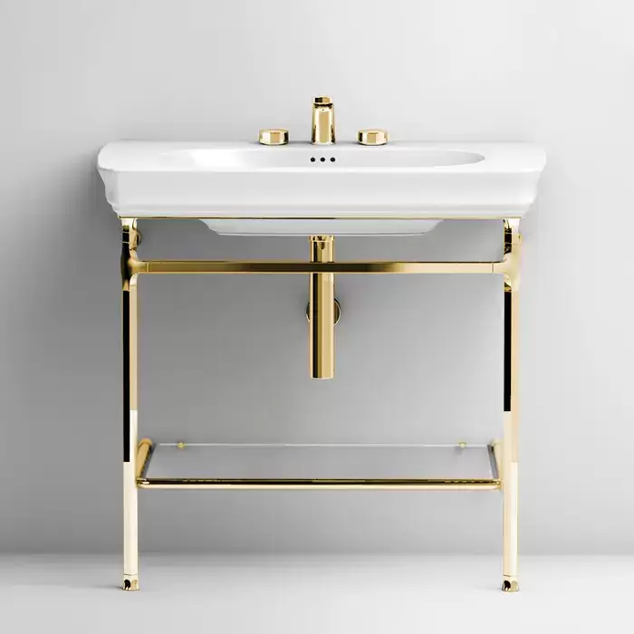Artceram Civitas Структура металлическая Quadra 70х40хh80,5см, полка стекло, напольная, цвет: золото