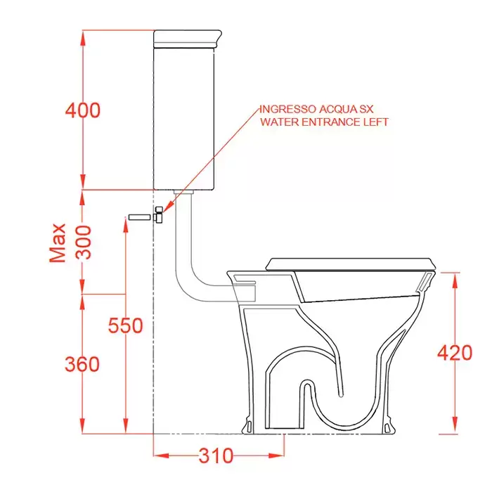 Artceram CIVITAS Унитаз 36х54см., со средним бачком и трубой хром, с механизмом с фронтальной ручкой, с сиденьем, микролифт, цвет: белый/хром