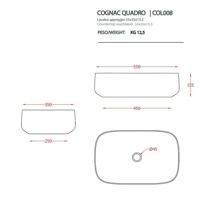 Artceram COGNAC Раковина 55x35 см, без отв., настольная Quadro, цвет: notte