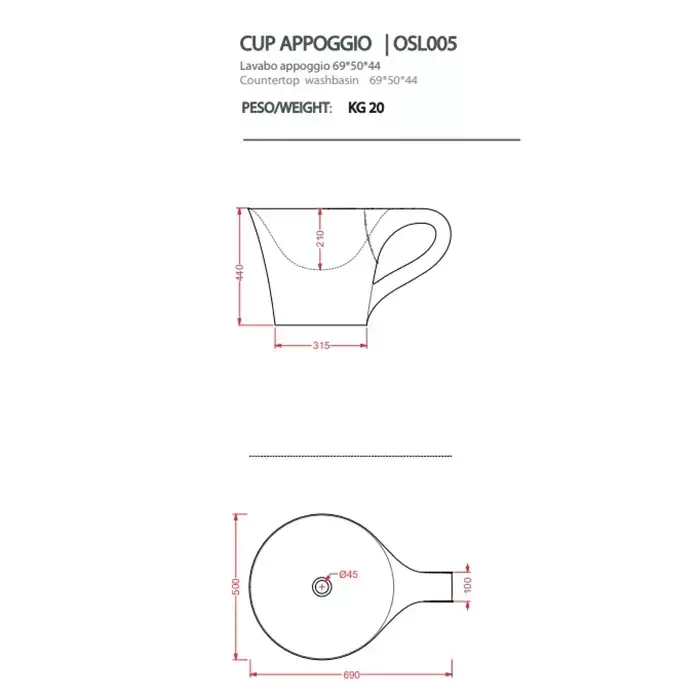 Artceram CUP Раковина накладная 70х50хh42.5 см, без отв., цвет: черный/белый