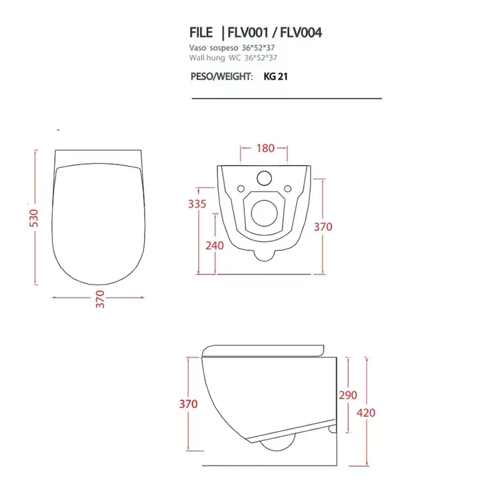 Artceram FILE 2.0 Унитаз подвесной 53х37см, безободковый, с крепежом, цвет: tortora