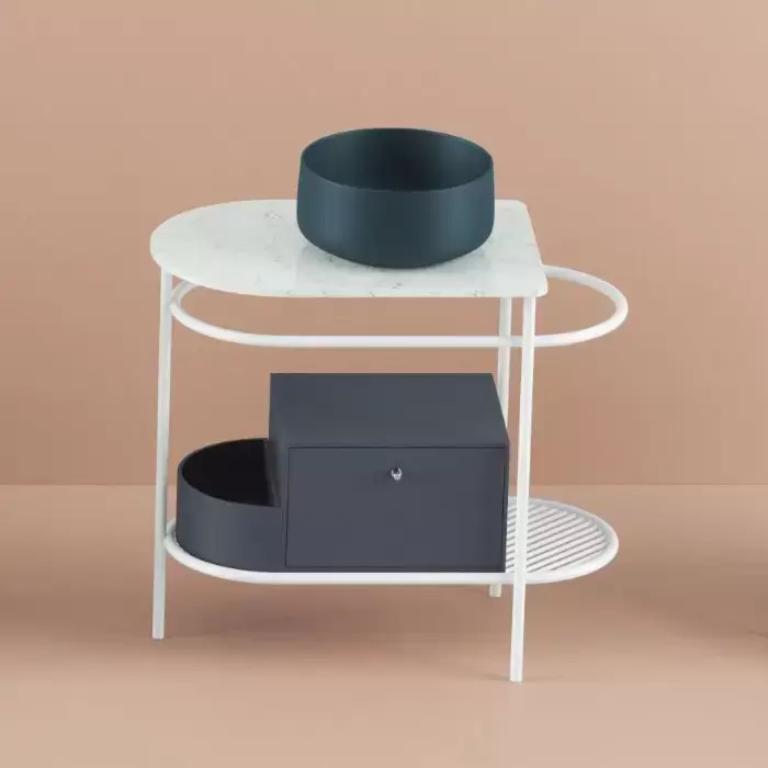 Artceram Flair 3.0 Металлическая консоль с раковиной, 85х46х75.5см., напольная, с выдвижным ящиком и мраморной столешницей, цвет: белый матовый/petrolio