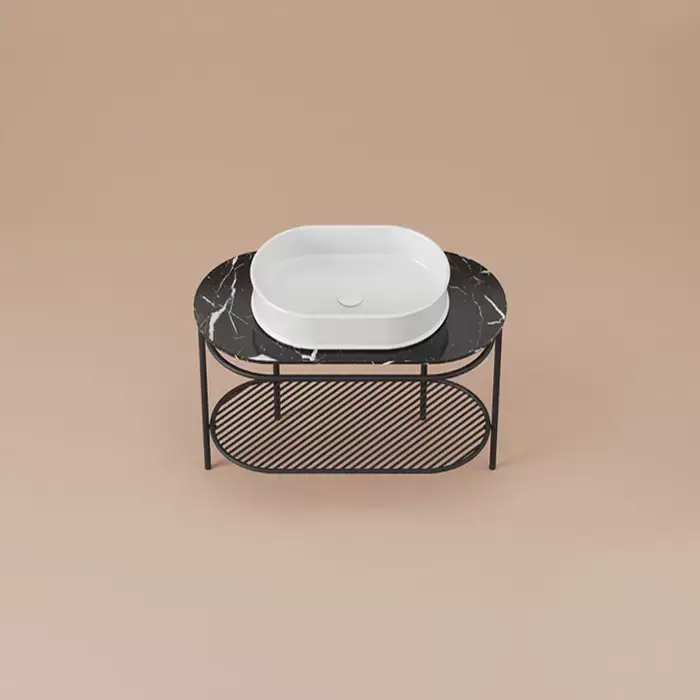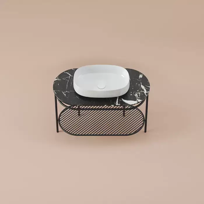 Artceram Flair 4.0 Консоль металлическая с раковиной 95x48хh75см., напольная, с полочкой и мраморной столешницей, цвет: черный матовый/белый