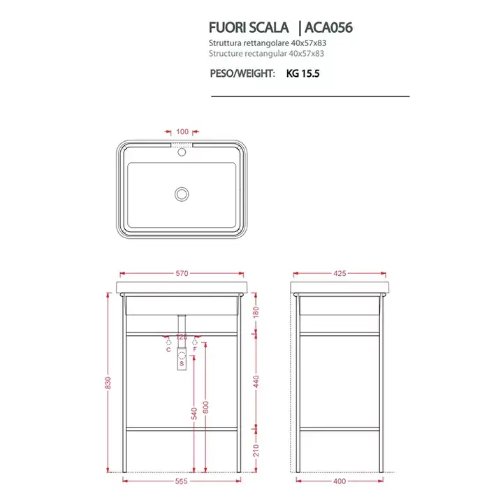 Artceram Fuori Scala Консоль металлическая с раковиной, 57х42.5х83см., напольная, с полочкой, подвесная, цвет: moka/matera