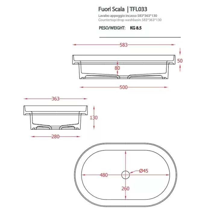 Artceram Fuori Scala Раковина 58х36 см, без отв., встраиваемая, без перелива, цвет: matera