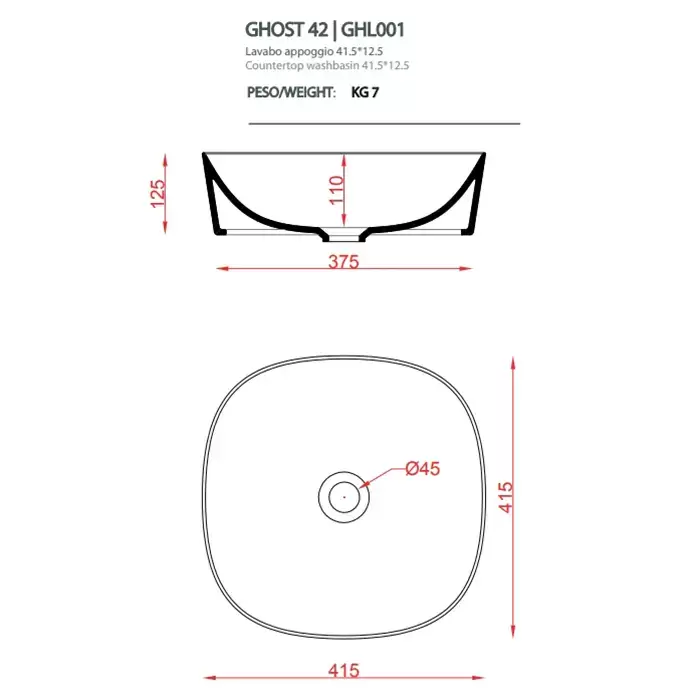 Artceram Ghost Раковина 42 см, без отв., накладная, без слив-перелива, цвет: белый