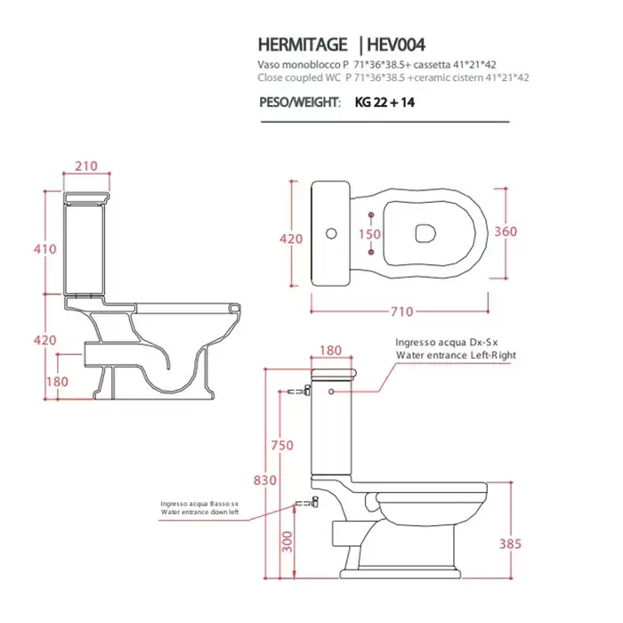 Artceram HERMITAGE унитаз моноблок 71х36см слив в стену с креплением, цвет: белый/бронза