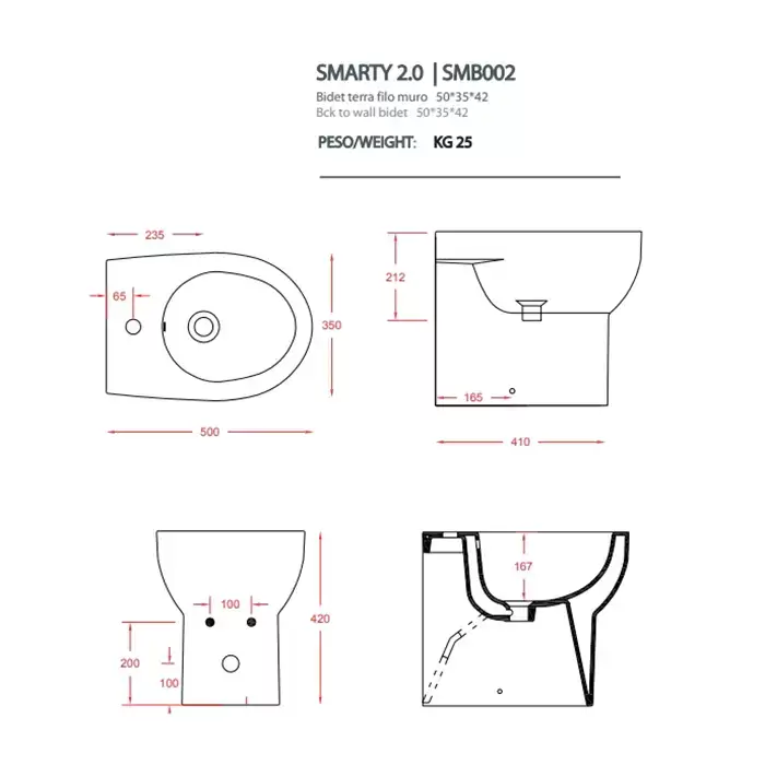 ARTCERAM/HIDRA SMARTY Биде напольное 35х50 см, без крепежа, с 1 отв под смеситель, цвет: белый