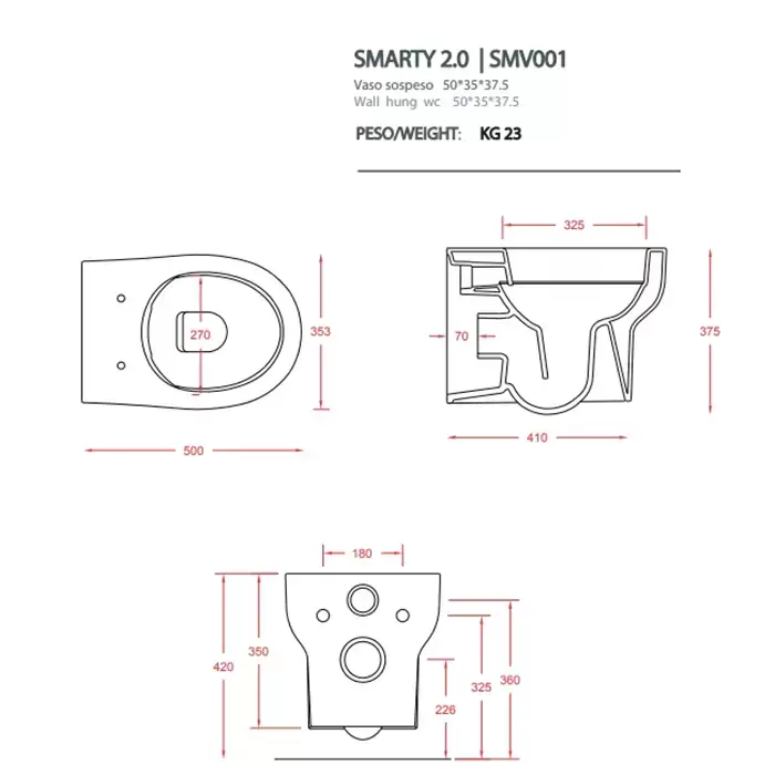 ARTCERAM/HIDRA SMARTY Унитаз подвесной безободковый 37х50 см, цвет: белый