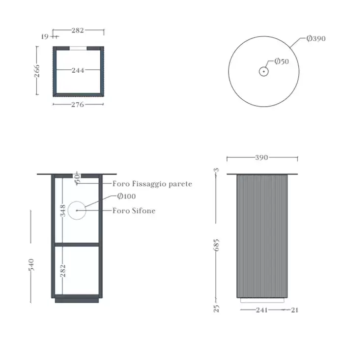 Artceram Mono Тумба напольная Ø39хh72 см для настольных раковин c одной дверцей, хромирой слив в комплекте, цвет: moka