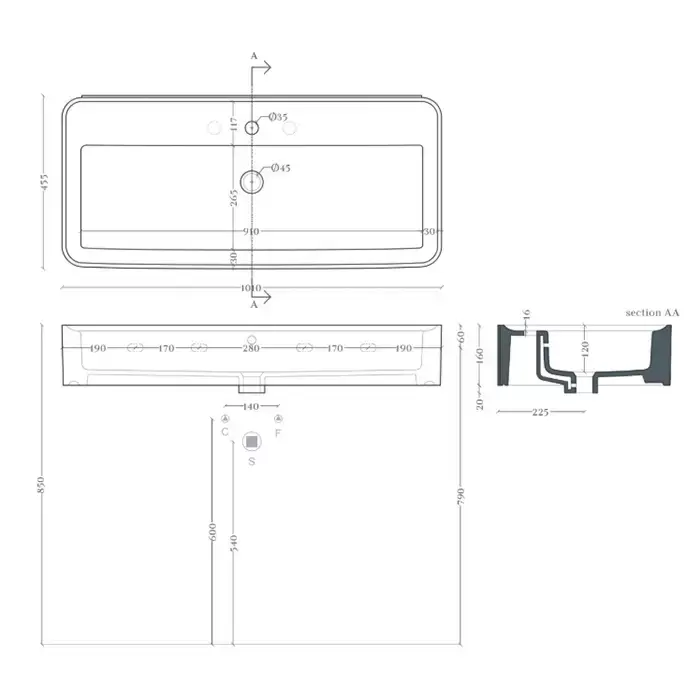 Artceram Rodolfo 100 Раковина накладная 100х45см., с 1 отв., без слив перелива, покр SANIGLAZE, цвет: белый