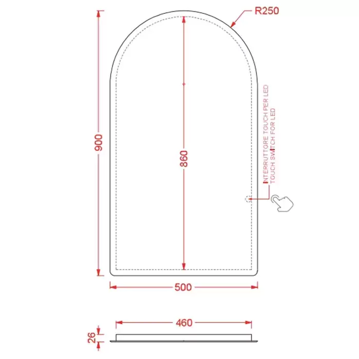 Artceram Semiarco Зеркало 50х90 см с LED-подсветкой и сенсорным выключателем