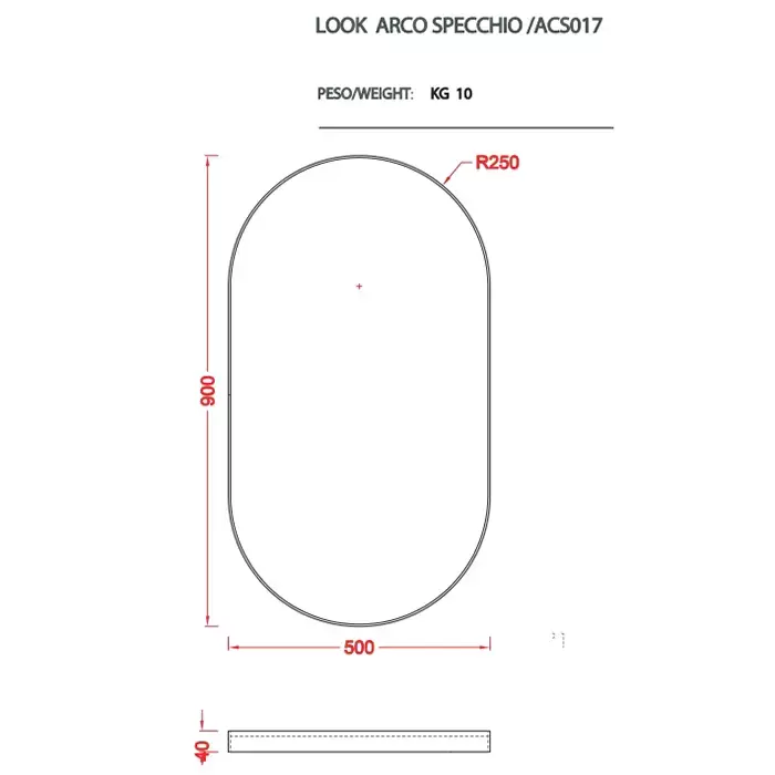 Artceram Зеркало Arco 50х90 см в металлической раме, цвет: черный матовый