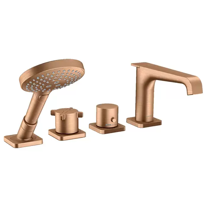 Axor Citterio E Смеситель на борт ванны, термостатический, на 4 отв., с ручным душем, (внешняя часть), цвет: шлифованная бронза