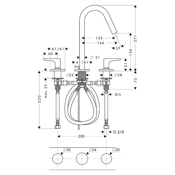 На 3 отверстия