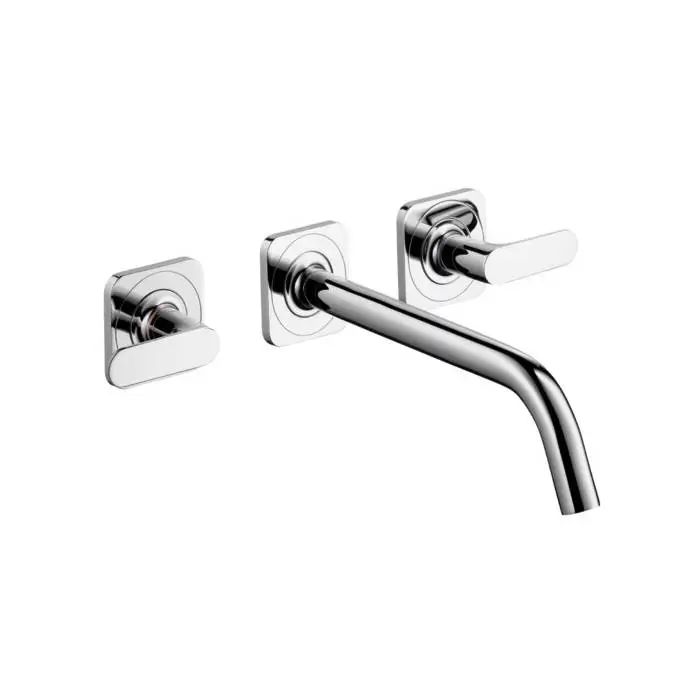 Axor Citterio M Смеситель для раковины, на 3 отверстия, с рычаговыми рукоятками, розетками и изливом 226 мм, настенный монтаж, внешняя часть, цвет: хромAxor