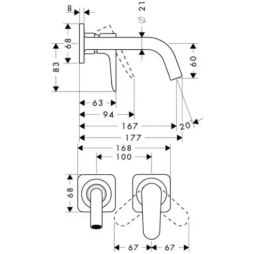 Axor Citterio M, Смеситель для раковины, однорычажный, с розетками и изливом 167 мм, СМ, внешняя часть, цвет: хром