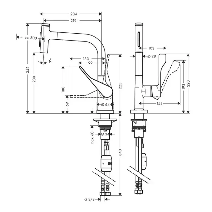 Axor Citterio Смеситель для кухни, 1 отв., с вытяжным изливом, цвет: сталь