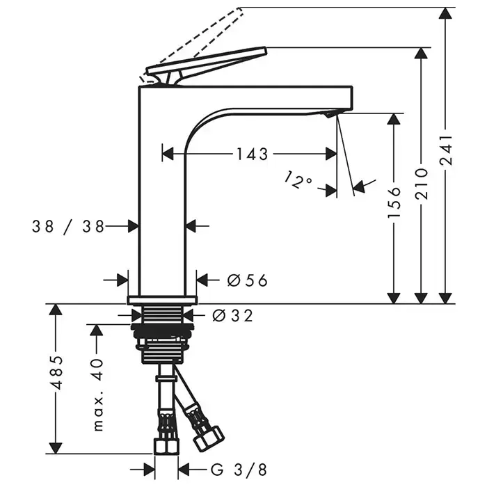 Axor Citterio Смеситель для раковины, 1 отв., излив h160мм, с незап. сливом, с текстурой, цвет: хром