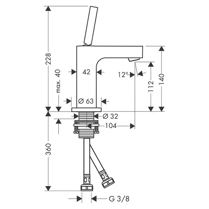 Axor Citterio Смеситель для раковины 110, на 1 отв., излив: 104мм, без донного клапана, цвет: хром