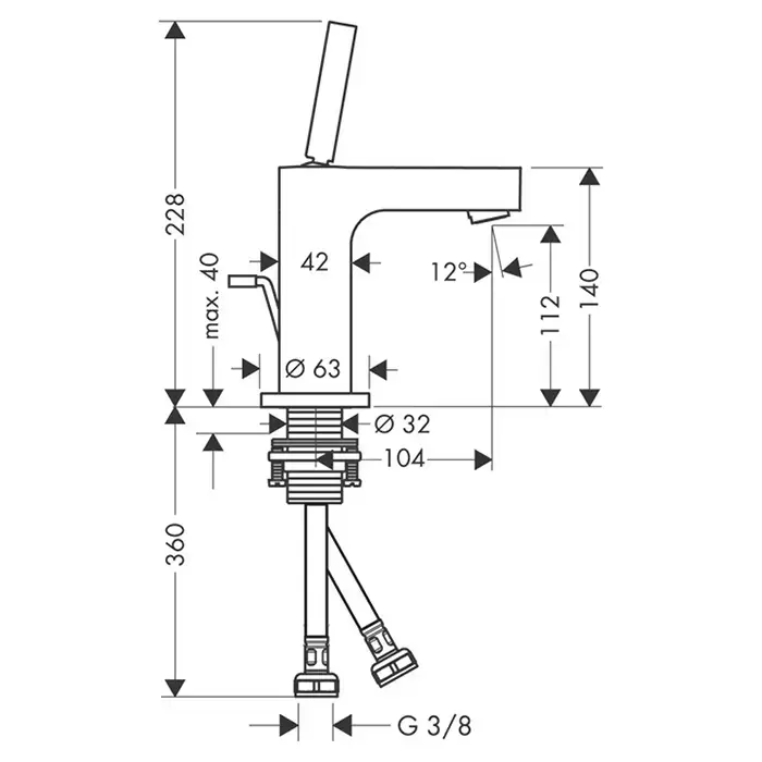 Axor Citterio Смеситель для раковины 110, на 1 отв., излив: 104мм, с донным клапаном, цвет: хром