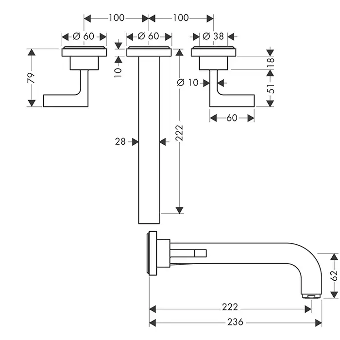 Axor Citterio Смеситель для раковины 222, встраиваемый, излив: 22.2см., ручка: рычаг, цвет: полированное золото