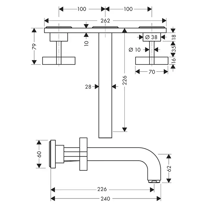 Axor Citterio Смеситель для раковины 226, встраиваемый, излив: 22.6см., с панелью, цвет: полированное золото