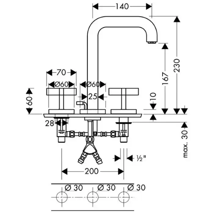 Axor Citterio Смеситель для раковины на 3 отверстия, цвет: хром