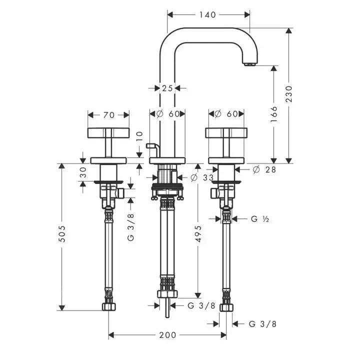Axor Citterio Смеситель для раковины на 3 отверстия, ручки крестиком, цвет: хром