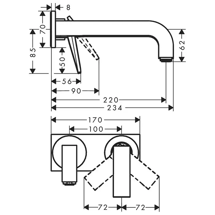 Axor Citterio Смеситель для раковины, встраиваемый, излив 220 мм, с панелью, с текстурой, внешняя часть, цвет: хром