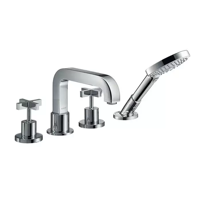 Axor Citterio, Смеситель для ванны, на 4 отверстия, монтаж на плитку, с крестовыми рукоятками, внешняя часть, цвет: хром